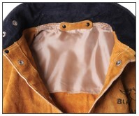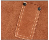 Leather reinforcements that prevent snap plates from damaging the garment.