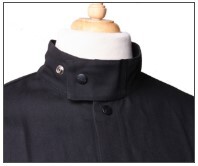 A stand-up collar designed to shield the neck from sparks—without feeling stiff or restrictive.